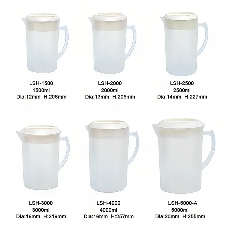 Ningbo Powerr Plastic Products Co., Ltd هي واحدة من أفضل الشركات المصنعة لأباريق الماء البارد البلاستيكية سعة 1500-5000 مل PP في الصين. يحتوي هذا التصميم على ستة مواصفات مختلفة، يرجى الاطلاع على الورقة أدناه. بالإضافة إلى ذلك، قمنا بتجهيز الإبريق بغطاء مزدوج الفتحة. بدءًا من الاستخدام العائلي اليومي وحتى الإعدادات الاحترافية، فهو يقدم تصميمًا واحدًا يلبي الاحتياجات المتنوعة، مما يجعل كل استخدام مريحًا وفعالاً. إذا كنت مهتمًا بهذه السلسلة أو كنت بحاجة إلى مواد وأحجام أخرى، فلا تتردد في الاتصال بنا!