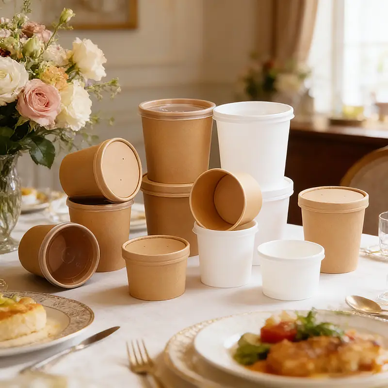 آمن وعملي وجذاب وصديق للبيئة، إن وعاء ورق حساء ورق الكرافت سعة 32 أونصة الخاص بنا هو الحل الأمثل لتغليف الأطعمة الساخنة والأطعمة الباردة والوجبات الخفيفة وخدمات الوجبات الجاهزة ذات العلامات التجارية.