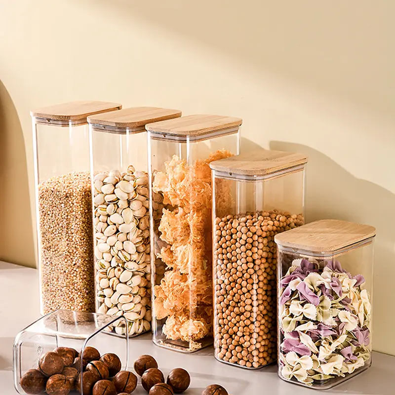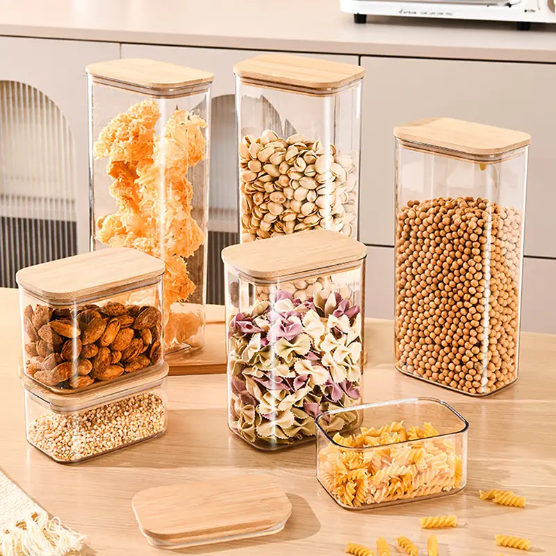 يتناقض الملمس الدافئ للغطاء الخشبي مع الخطوط البسيطة للجسم البلاستيكي، مما يعزز الجودة الشاملة بشكل فعال ويزيل رخص المنتجات البلاستيكية العادية. عند وضعها على طاولات الطعام أو أسطح المطبخ أو الأرفف، فهي لا يمكنها تخزين المكونات فحسب، بل تعمل أيضًا كقطعة أثاث عملية وناعمة، مما يحسن المظهر العام للمساحة ويكون مناسبًا لمختلف أنماط المنزل.